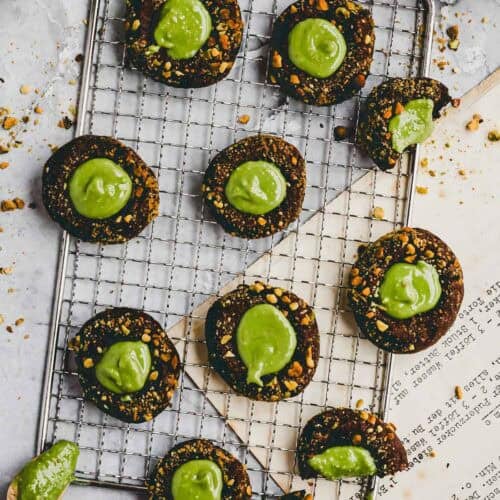 Hier ist meine weihnachtliche Version der trendigen Dubai Schokolade: Dubai Plätzchen! Zarte Schoko-Kekse, umhüllt von Pistazien und gefüllt mit cremiger Pistaziencreme! ✨🎄