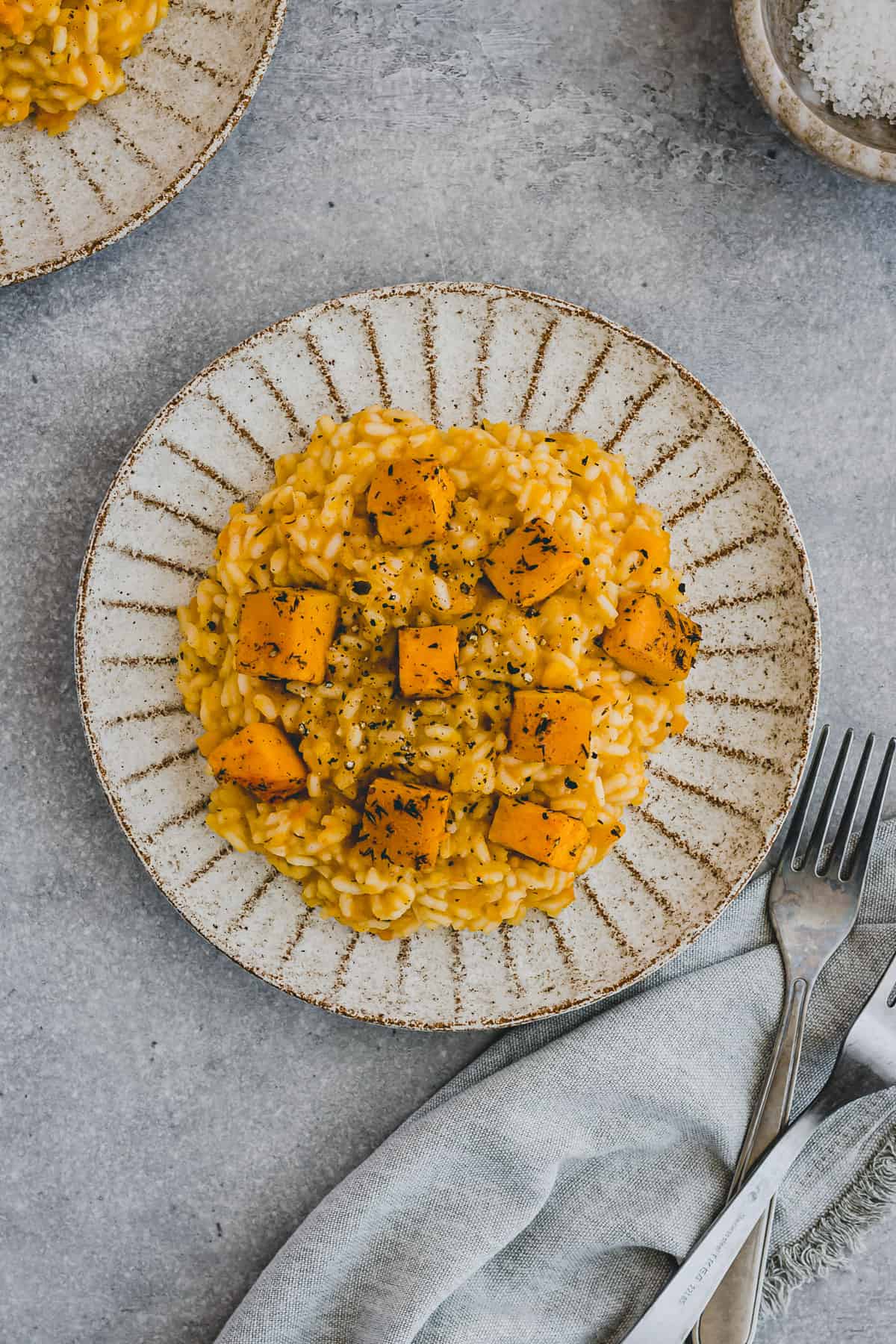 Kürbisrisotto mit geröstetem Kürbis aus dem Ofen – ein cremiges, einfaches, veganes, und leckeres Gericht zur Kürbiszeit!