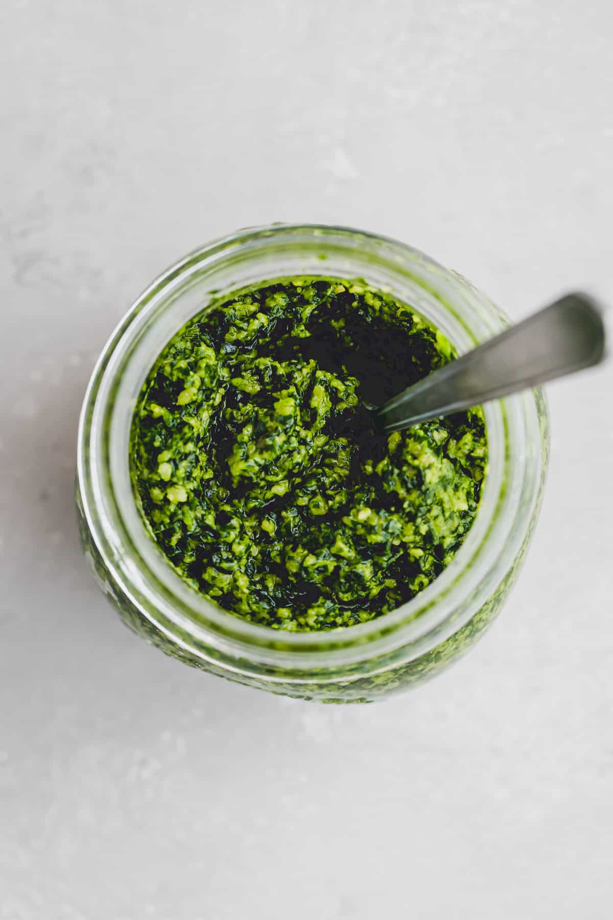 Damit es so lange wie möglich hält, solltest du das Pesto jedes Mal, wenn du davon nimmst, wieder mit Olivenöl bedecken. Dies gilt übrigens für alle Pestos. Denn wenn sie gut mit Öl bedeckt sind, hat Schimmel weniger Chance. 😉